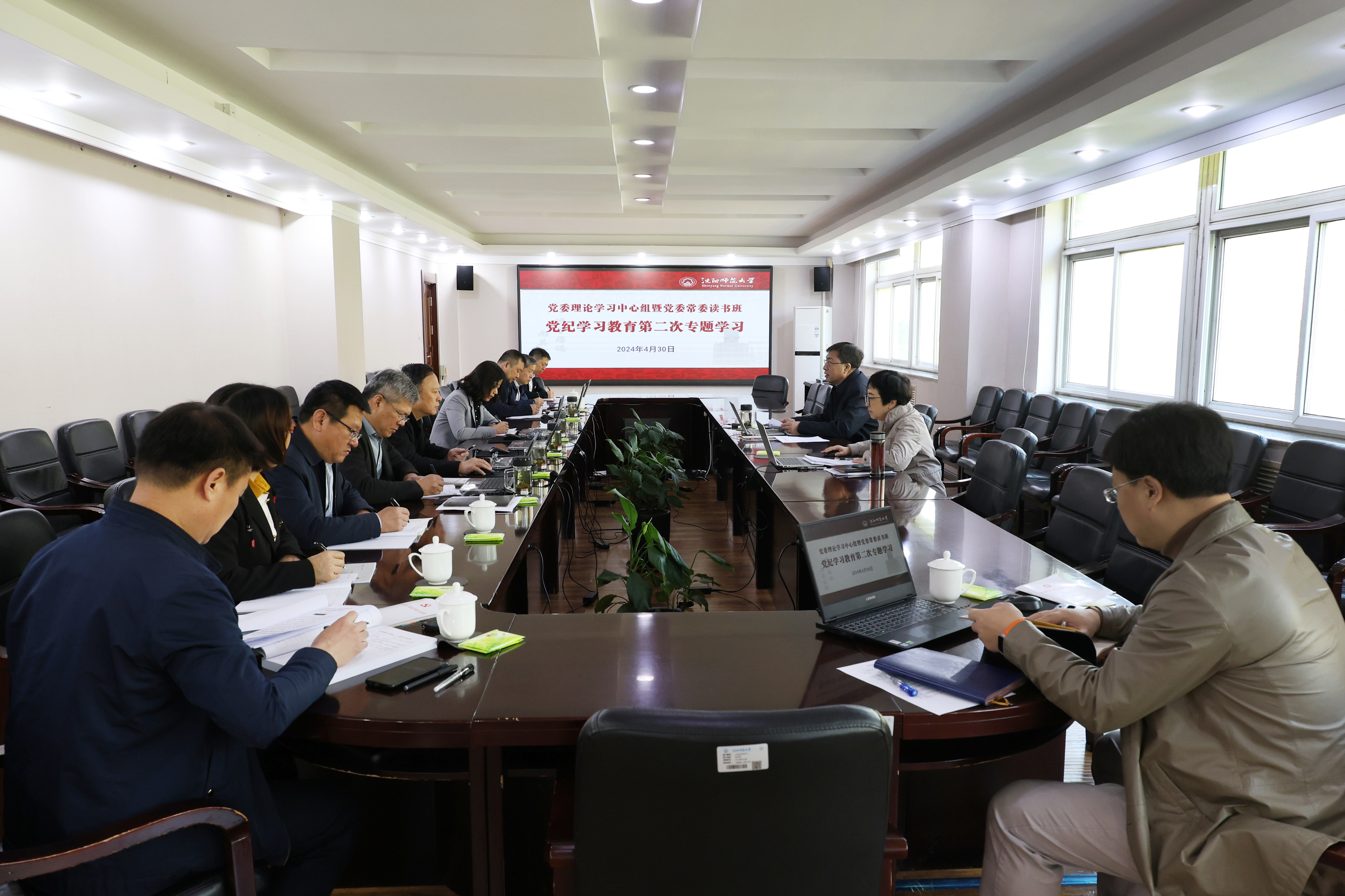 4月30日,学校党委在校部303会议室召开党委理论学习中心组暨党委常委读书班党纪学习教育第二期专题学习会议,认真学习贯彻习近平总书记为第六批全国干部学习培训教材所作《序言》精神,传达学习省委相关文件内容,集体学习《中国共产党纪律处分条例》相关内容,研究党纪学习教育各项落实工作。学校党委理论学习中心组成员郝德永、杨松、杨旭、卢全、刘天华、邵永运参加学习,相关职能部门负责人列席会议。党委书记郝德永主持会议并讲话。