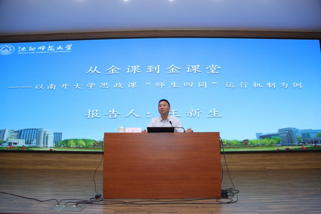 南开大学原副校长、马克思主义学院教授、博士生导师王新生作题为“从金课到金课堂——以南开大学思政课‘师生四同’运行机制为例”的主题报告,阐述了由金课到金课堂的创新机制,分析了思政课教学面临的突出问题,提出坚持以习近平新时代中国特色社会主义思想的铸魂育人为核心,坚持以爱国主义教育为主线,推动“师生四同”,开展体制机制创新。