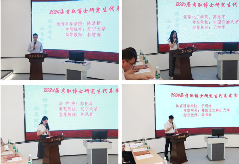 会上,来自教育科学学院、化学化工学院、法学院、体育科学学院的4名考取博士研究生同学,分别结合自身的求学经历、科研成果产出、考博准备、导师指导、读博期间的规划等方面进行了交流分享,表示不会辜负母校和老师们的期望,更好地为母校的事业发展贡献自己的一份力量。生命科学学院姚志远作为硕士研究生导师代表,鼓励研究生要发表高质量学术论文,要全程参与论文写作与发表过程,要提前进入实验室、注重前期积累,要积极参加校外联培、拓宽学术视野,研究生导师要注重与学生沟通、交流,多为学生做思想工作。