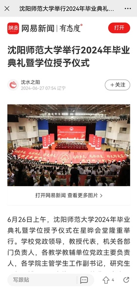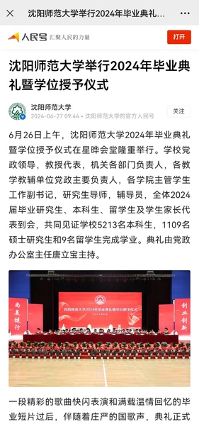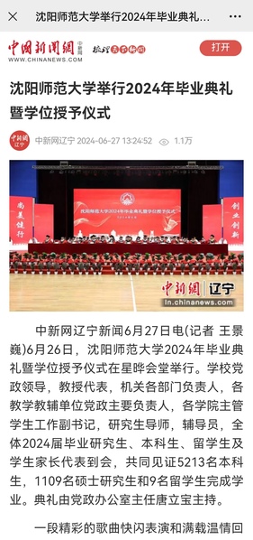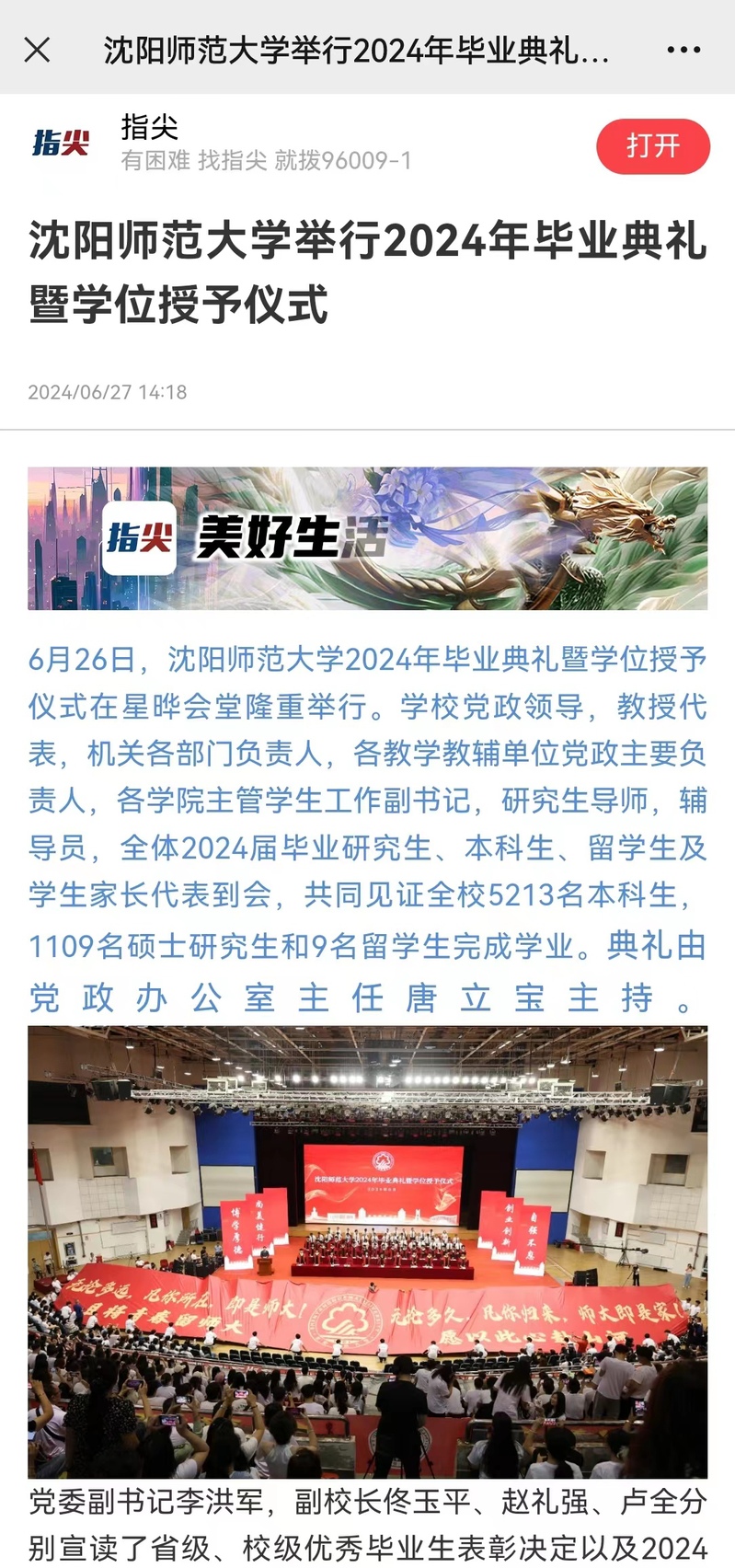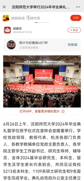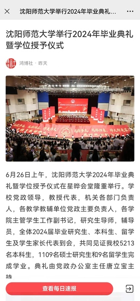 6月26日上午,必赢线路检测中心 2024 年毕业典礼暨学位授予仪式在星晔会堂隆重举行。中国新闻网、沈阳日报、沈阳晚报、网易、搜狐等媒体进行了广泛宣传报道。