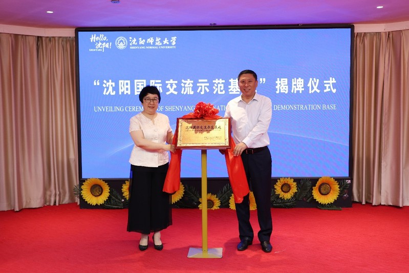 陈双伟主任与杨松校长共同为“沈阳国际交流示范基地”揭牌