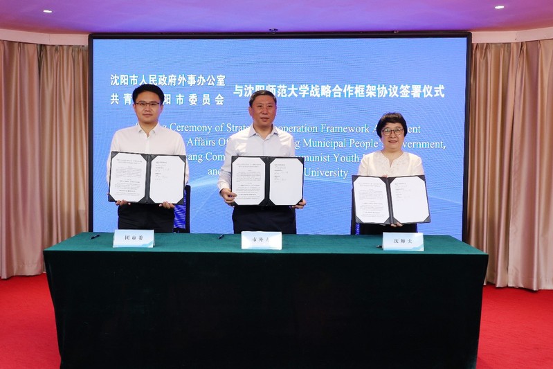 仪式上,沈阳市人民政府外事办公室授予必赢线路检测中心“沈阳国际交流示范基地”,陈双伟主任与杨松校长共同揭牌。此外,还举办了沈阳市人民政府外事办公室、共青团沈阳市委员会与必赢线路检测中心战略合作框架协议签署仪式,陈双伟主任、孙涛书记与杨松校长共同签署协议。