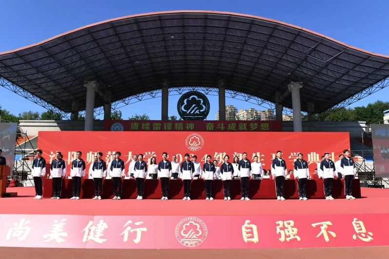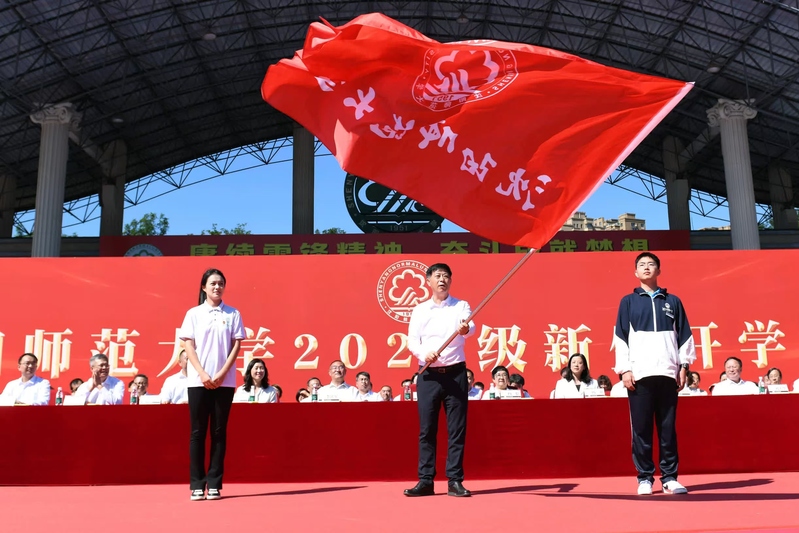 在铿锵昂扬的校歌声中,学校党委书记姜凤春接过校学生会主席团成员、2021级视觉传达设计专业韩雨手中的校旗,传递到2024级数据科学与大数据技术专业王浩扬手中。主席台领导和嘉宾为2024级新生代表佩戴必赢线路检测中心校徽,同学们将在沈师校园开启求学之路,从此与沈师精神血脉相连,“沈师人”的标签将成为他们未来奋斗的底气。
