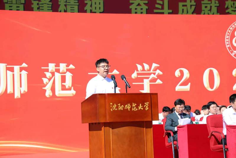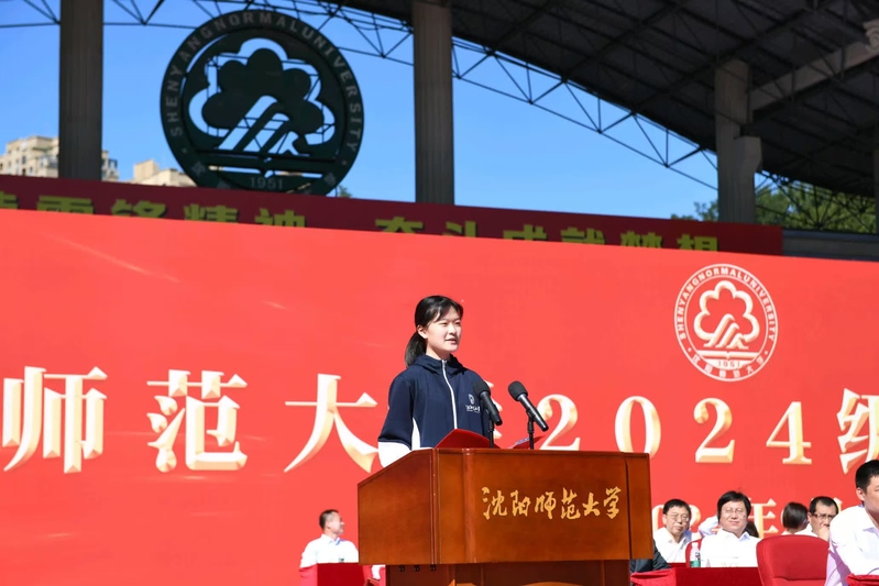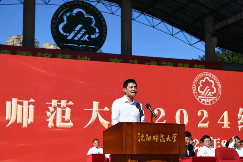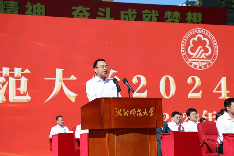 党委副书记、校长杨松在开学典礼上讲话。她代表学校全体师生员工向来自全国各地的5874名本科生、1551名研究生和来自世界20个国家的77名留学生表示诚挚的祝贺和热烈的欢迎,并与同学们共同感受沈师73载丰厚的文化底蕴、重温奥林匹克精神的三大核心理念,鼓励具有努力拼搏精神和独特灵气活力的“00后”新生同学们,赓续奥运精神、领悟大学真谛,牢记“信念、拼搏、超越、合作”,真正地践行、深思、追求,成就更好的自己。