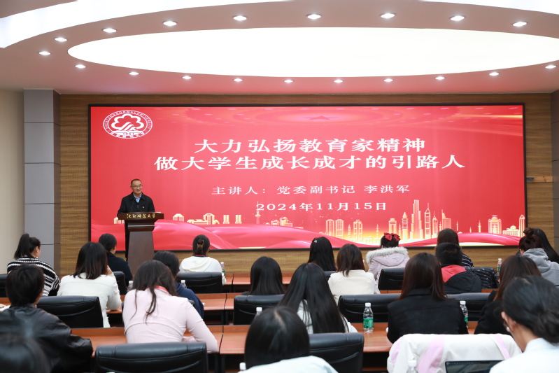 李洪军强调,要大力弘扬教育家精神,做新时代大学生健康成长的指导者引路人。要以教育家精神为思想引领,深刻理解教育的本质与意义,坚定理想信念,自觉将个人理想融入学校和国家发展大局之中,做新时代大学生奉献祖国的引路人。要以教育家精神为行为规范,培养道德情操,做新时代大学生锤炼品格的引路人。要以教育家精神为实践追求,提升学识修养,不断汲取新知识,提升综合素质,做新时代大学生创新思维的引路人。要以教育家精神为育人理念,秉持仁爱之心,用真情、真心、真诚走近学生,做新时代大学生学习知识的引路人。