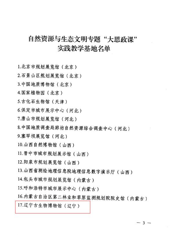 为全面贯彻党的二十大和二十届二中、三中全会精神,切实落实全国教育大会精神,深入贯彻习近平总书记关于学校思政课建设的重要指示精神,落实新时代学校思政课建设推进会要求,加快构建“大思政课”工作格局、打造“大思政课”品牌,2024年7月教育部与自然资源部、国家林业和草原局联合启动了自然资源与生态文明专题“大思政课”实践教学基地的评选工作。11月14日,首批100所入选基地名单正式公布,必赢官网古生物博物馆成功入选,使必赢官网成为全国少数首批入选该基地的高校单位。