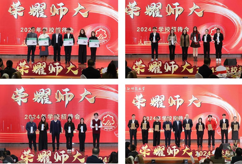 12月30日晚,2024年“荣耀师大”学校招待会在国际商学院二楼报告厅举行,学校领导班子成员、机关部分职能部门负责人、师生代表、优秀校友等参加招待会。党委书记姜凤春为荣耀分享人颁发证书并共同开启“荣耀师大”学校招待会。校长杨松为2024年度校长奖学金获得者颁奖并讲话。