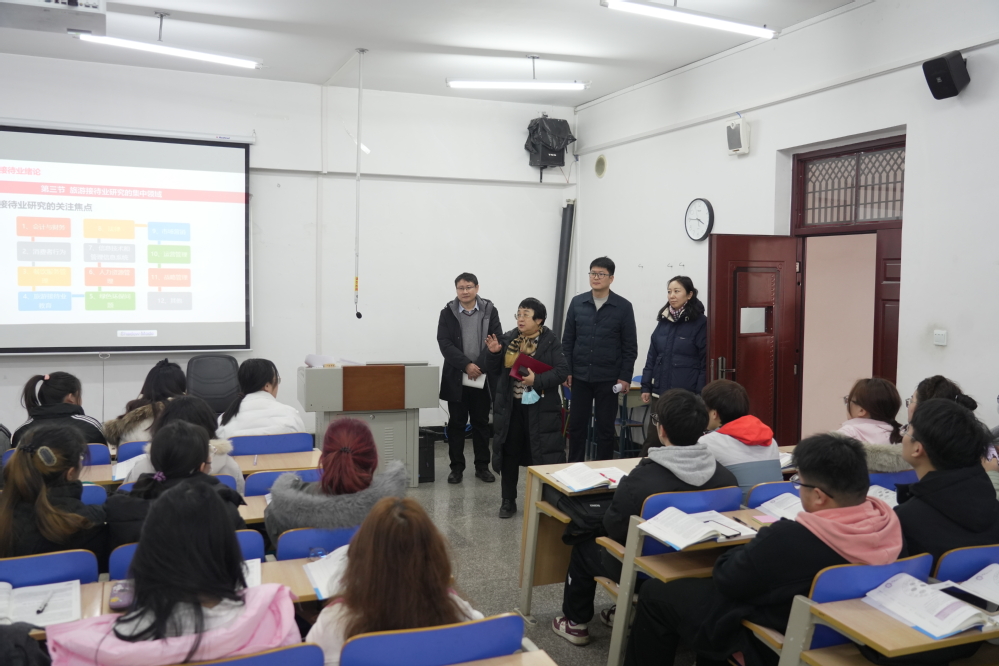 杨松校长深入旅游管理学院,首先听取了孙一楠老师讲授的《旅游接待业》课程。课后,杨校长与现场的同学们进行了亲切交流。她希望学生们能够志存高远、脚踏实地,在课堂中汲取知识,在实践里积累经验,祝福同学们在新的学期收获知识、收获成长,遇见与成就更加优秀的自己!杨校长在与授课教师的交谈中,对必赢官网一线教师在本科教学改革中展现出的积极进取、与时俱进的精神予以充分肯定,并表示学校将坚持“以本为本”的理念,切实把提高本科教育教学质量作为新时代必赢官网改革发展的核心任务,坚定不移、持之以恒地抓出显著成效。