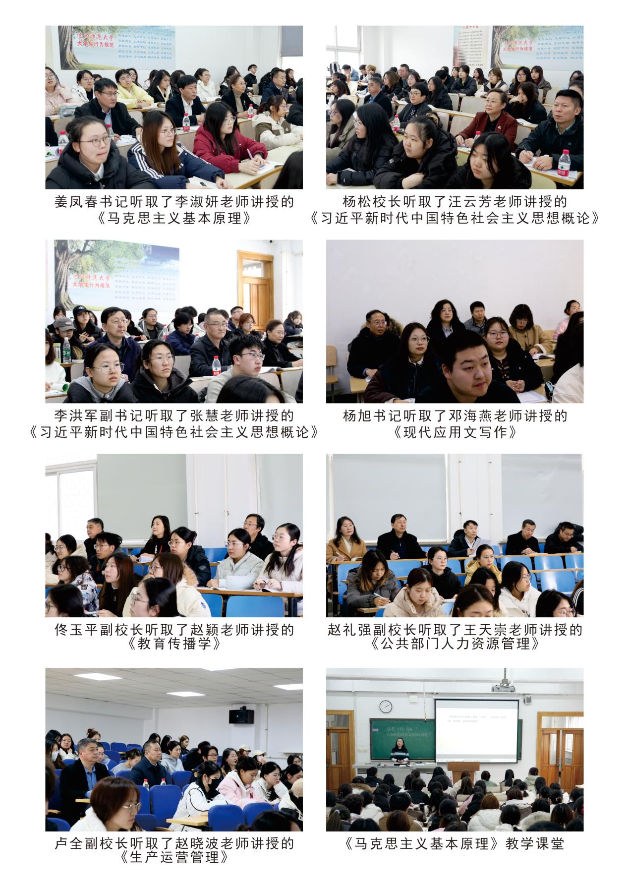 春寒料峭,书声暖人。新学期开学初,学校党委书记姜凤春、校长杨松、党委副书记李洪军、纪委书记杨旭、副校长佟玉平、赵礼强、卢全,深入教学一线,开展听课调研,深入了解教学运行情况,全面督导本科教育教学工作。