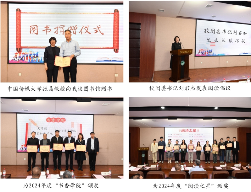 活动对上一年度“阅读之星”和“书香学院”进行了表彰。依据2024年阅读数据,张艺霖、柳迎晨等10名同学荣获2024年度“阅读之星”称号。文学院、教育科学学院、马克思主义学院、社会与历史学院、新闻与传播学院5家单位荣获2024年度“书香学院”称号。