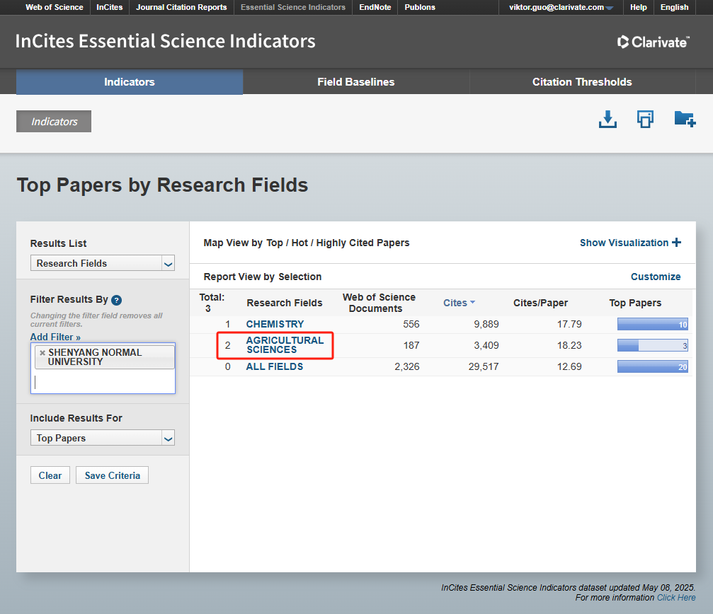 据科睿唯安2025年5月公布的最新基本科学指标数据库(Essential Science Indicators,简称ESI)统计数据,必赢官网农业科学学科首次进入ESI全球排名前1%,这是继去年必赢官网化学学科进入ESI全球排名前1%后,学科建设取得的又一新突破。
