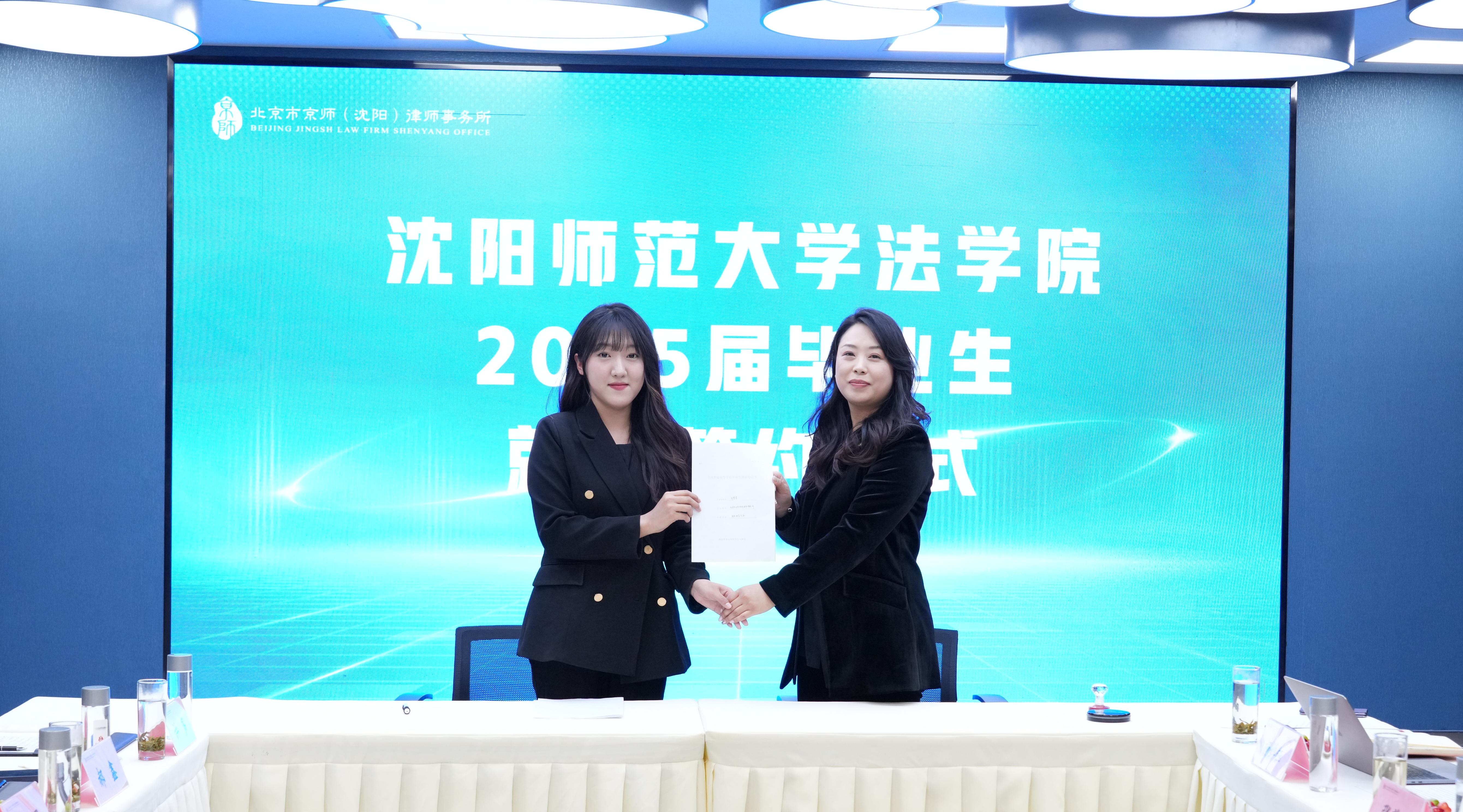 律所执行副主任白宏详细介绍了京师沈阳律所的发展战略及涉外法治业务布局,展现了其在跨境投资、国际贸易等领域的专业优势。党支部副书记张茜棱、青工委副主任杨婵钰分别分享了实习生培养经验,强调律所通过“导师制”“项目实战”等模式助力学生快速成长。必赢官网法学院2018届优秀毕业生石佳律师作为校友代表,深情回顾了从校园到职场的蜕变历程,寄语学弟学妹 “在实践中积累经验,在挑战中锤炼品格”。