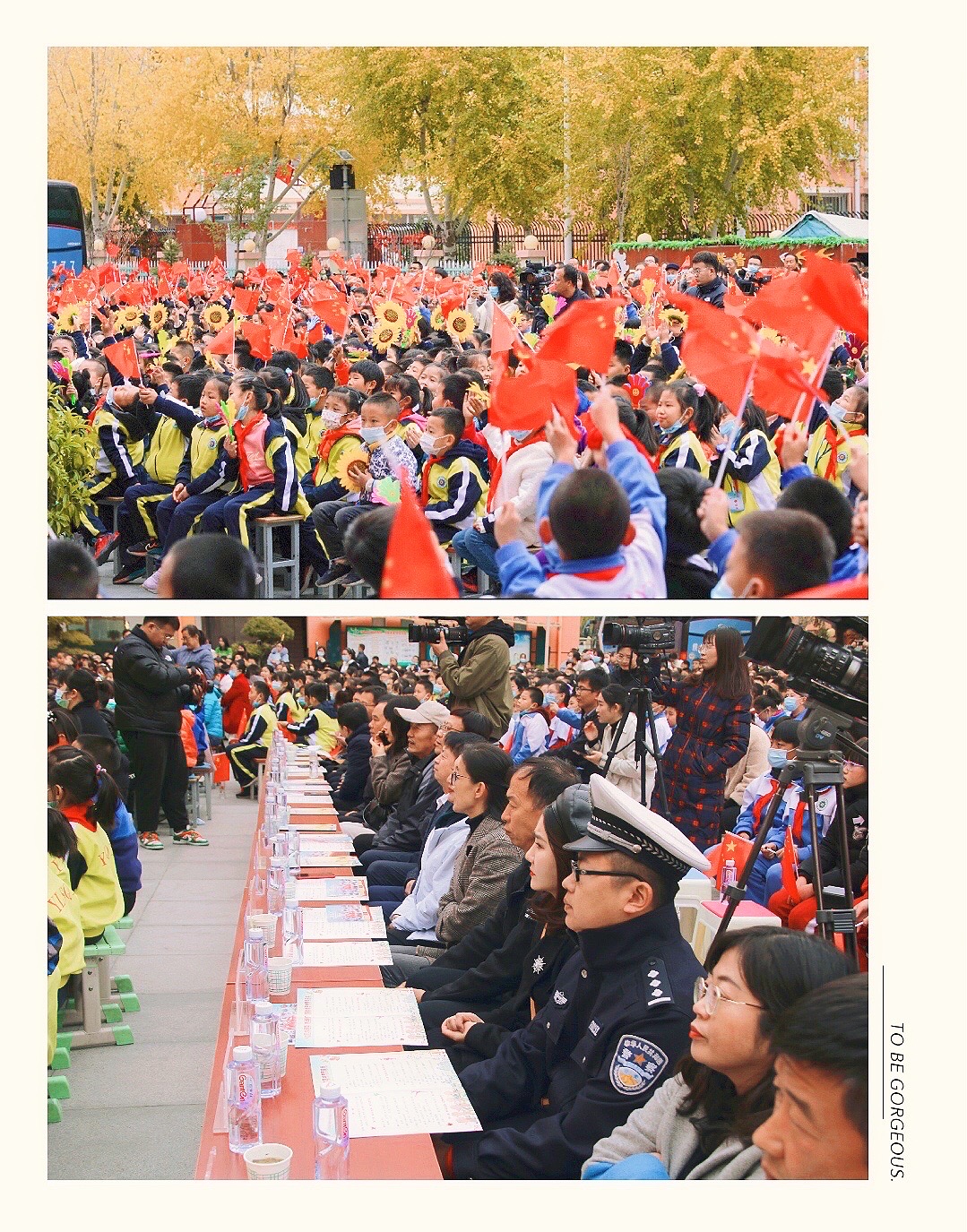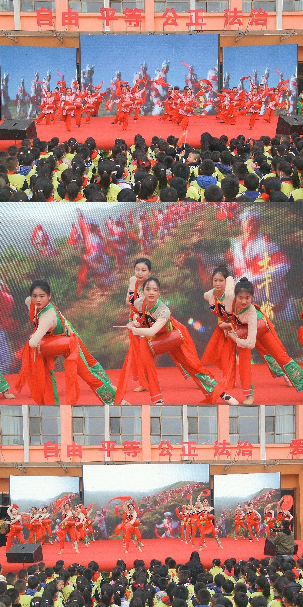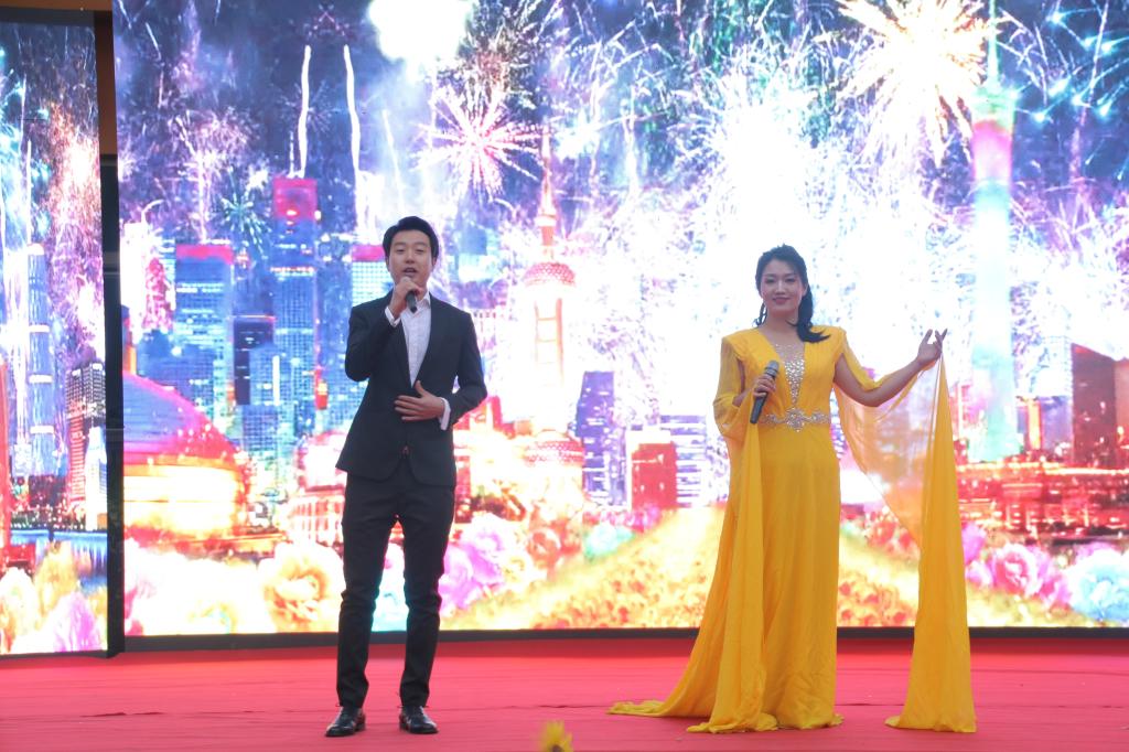 当天下午,榆林市十七小学校园内人头攒动、歌声如潮。艺术学院的师生们表演了精彩的管乐合奏《我和我的祖国》《千与千寻主题曲》《我的祖国》;腰鼓《鼓动天地》;舞蹈《出发》;古筝合奏;民族舞《喜鹊叫喳喳》;歌曲《节日欢歌》等节目,受到三千多名师生的热烈欢迎。