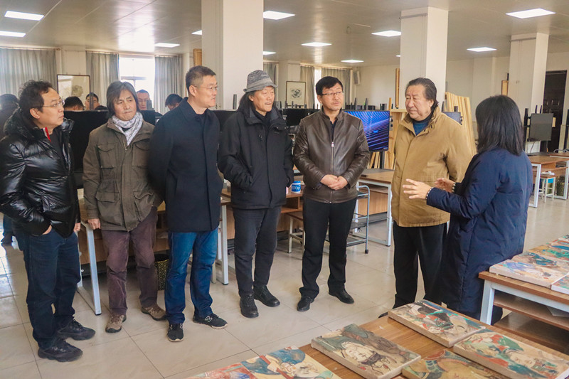 11月23日上午,中国美术家协会副主席、中国文化促进会会长、原国家画院院长杨晓阳教授,西安美术学院院长助理吴昊教授,延安美术家协会主席李师明,榆林文投公司总经理李军,延安大学鲁迅艺术学院惠菲教授等一行8人来beat365考察指导工作。beat365副校长康伟、艺术学院负责人等陪同。