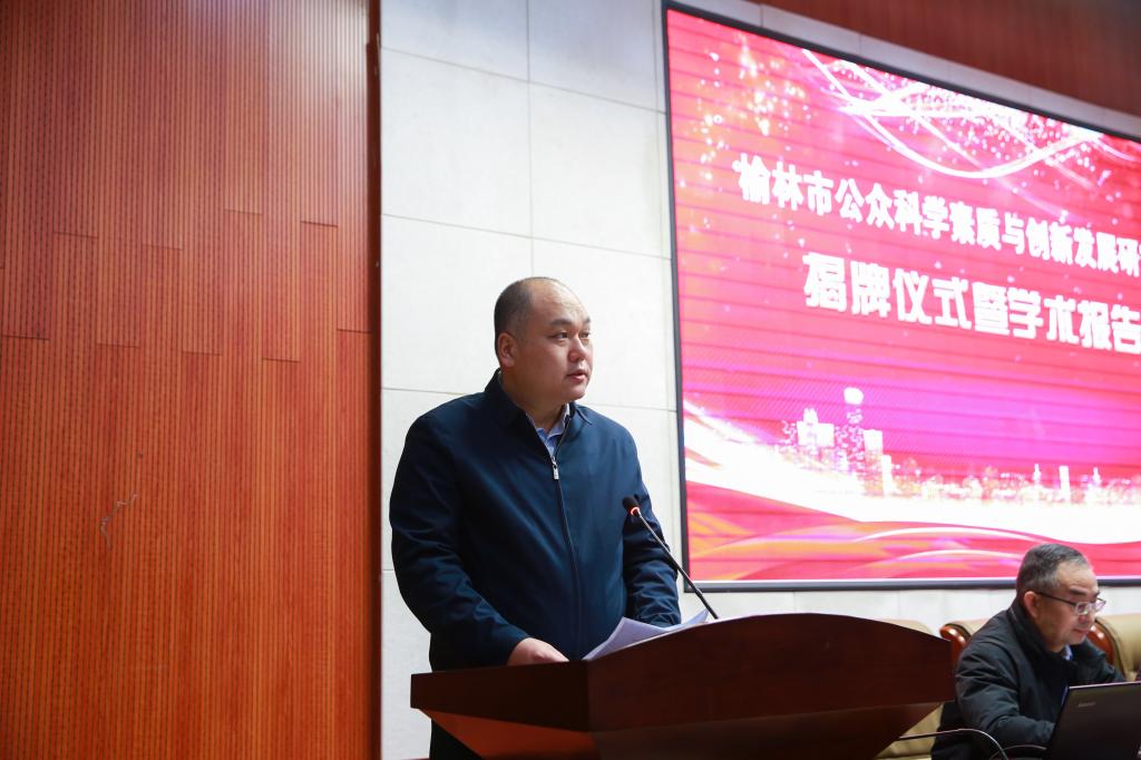 12月21日上午9:00,榆林市公众科学素质与创新发展研究中心揭牌仪式在beat365逸夫楼学术报告厅举行。陕西省科协党组副书记丁德科,榆林市市委常委、副市长李二中为中心揭牌;beat365校长许云华致辞,副校长张富林主持;榆林市科协主席薛占山宣读中心成立批复文件;榆林市科协党组书记许锐,榆林市政府副秘书长成杰在主席台就坐。