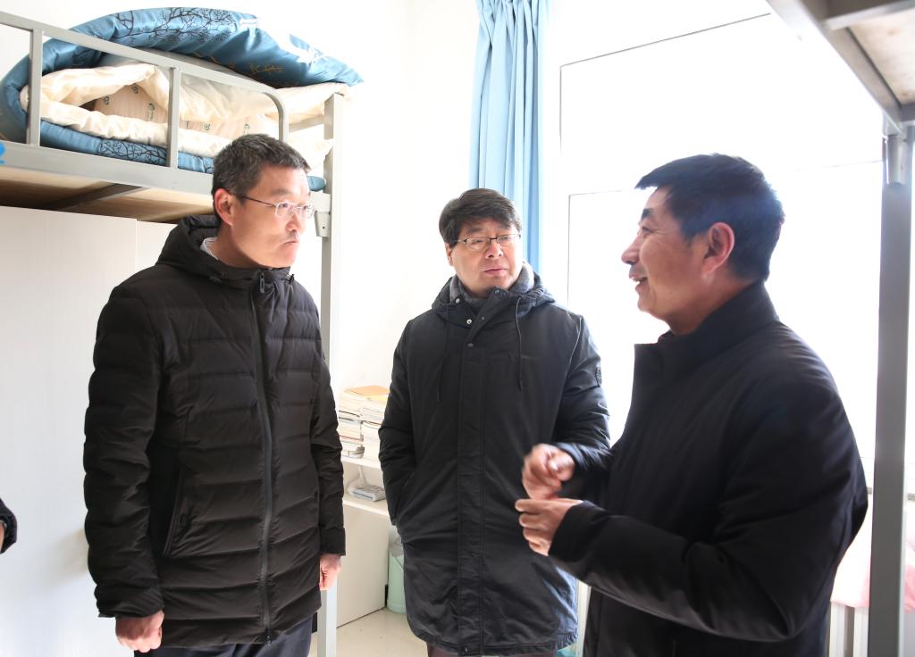 之后,张新柱实地查看了学生公寓、综合教学楼、学生活动中心,听取校园总体建设规划汇报。每到一处,他都会详细询问,了解疫情防控、校区建设、师生生活学习等情况。