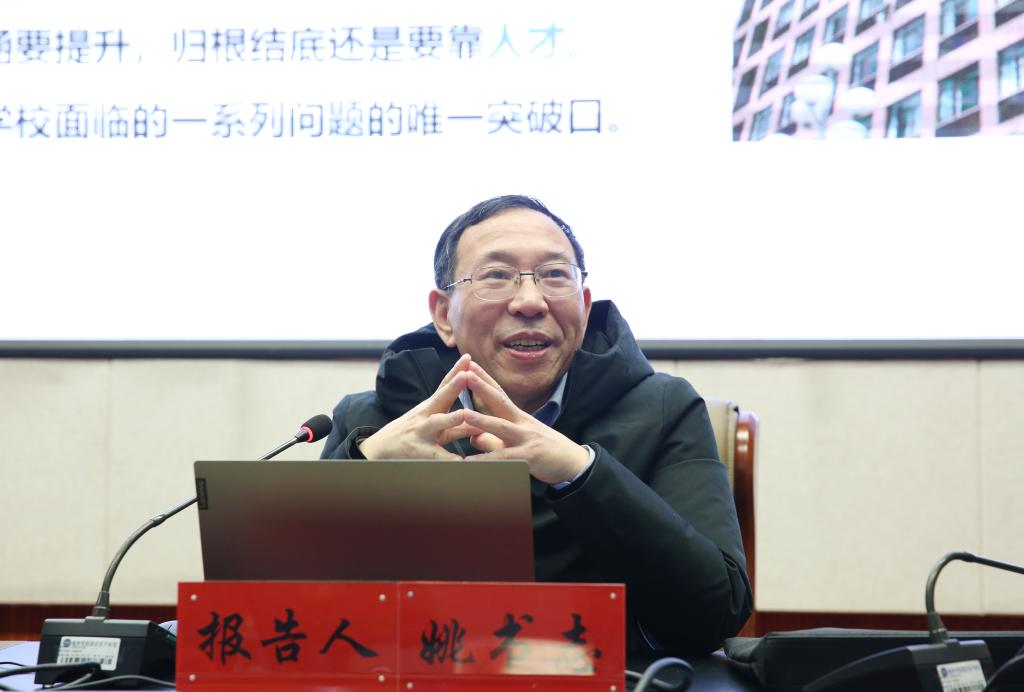 张新柱对姚书志书记的精彩报告表示诚挚的感谢。他指出,报告内容丰富、思想深刻,既有理论的高度,又有实践的广度,更有个人的感悟和思考,提出了宝贵而中肯的意见和建议,是一场有质量、有水平、非常精彩、非常接地气的好报告,对于beat365英国官方网站进一步加强人才队伍建设,具有重要的指导作用和借鉴意义。张新柱强调,一是陕西科技大学在姚书志书记带领下,坚定不移实施人才强校战略,三年三大步,办学层次和办学实力实现跨越式发展,是成功的典型案例,值得beat365英国官方网站学习和借鉴。二是大家通过走出去请进来,开展寒假大学习、大调研、大提升活动,头脑风暴、解放思想,采取拿来主义,不是生搬硬套,结合学校实际学习其理念、方法和一抓到底的韧劲。三是贯彻新发展理念,坚定不移实施人才强校战略,推进学校高质量发展。近期召开的党委会研究了学校2021年十项重大任务。寒假期间,大家要梳理政策,拿出高质量的政策,开学研究后安排部署。他希望大家认真学习、深刻领会,在分组研讨时借鉴今天报告的观点,将人才问题作为学校改革发展的核心问题和头等大事,坚定不移地实施人才强校战略,营造人才聚集和成长的良好环境,建立健全激励人才成长的科学机制,促进学校队伍的整体水平和实力不断提高。为打造有影响力、支撑地方经济社会发展的陕西北部高水平大学、为榆林实现“三大目标”提供坚强的人才保障。贯彻新发展理念,聚焦高质量发展,开启beat365英国官方网站追赶超越新征程。