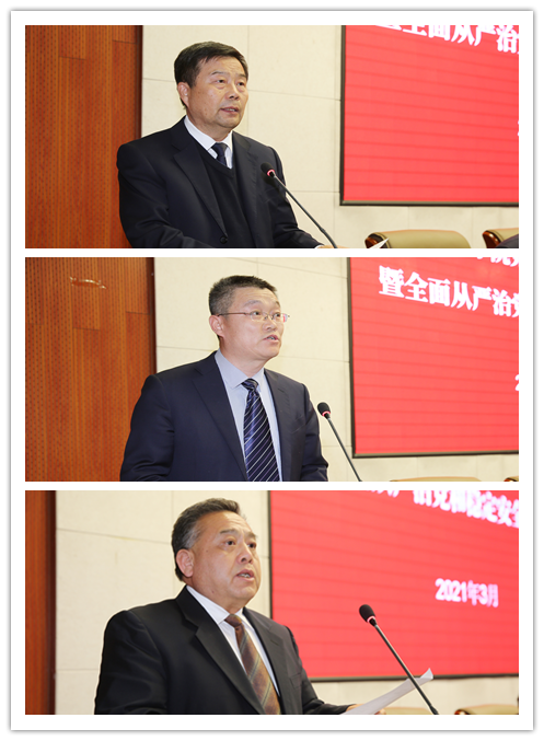 党委副书记李治山,副校长康伟,党委副书记、纪委书记姜劲波分别作专项工作说明