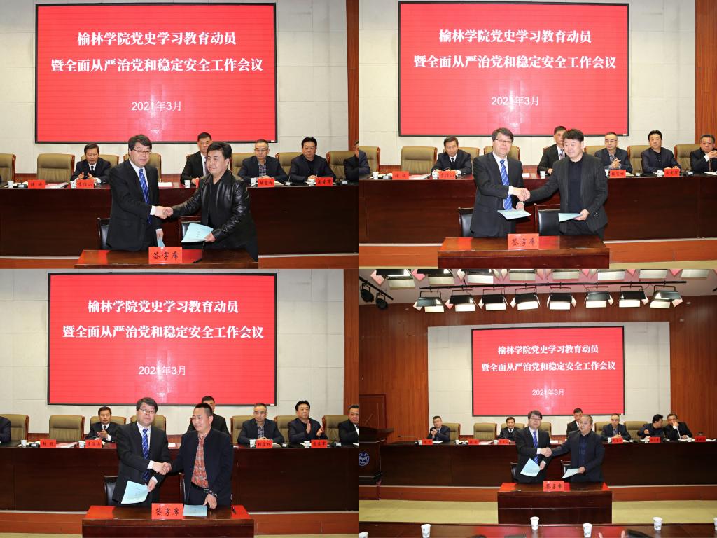 3月12日下午,beat365在逸夫楼报告厅召开党史学习教育动员暨全面从严治党和稳定安全工作大会。全体校领导,党委委员、纪委委员,各党总支、直属党支部书记,各二级学院、各部门、绥德师范校区副处级以上干部和党委部门全体人员参加。