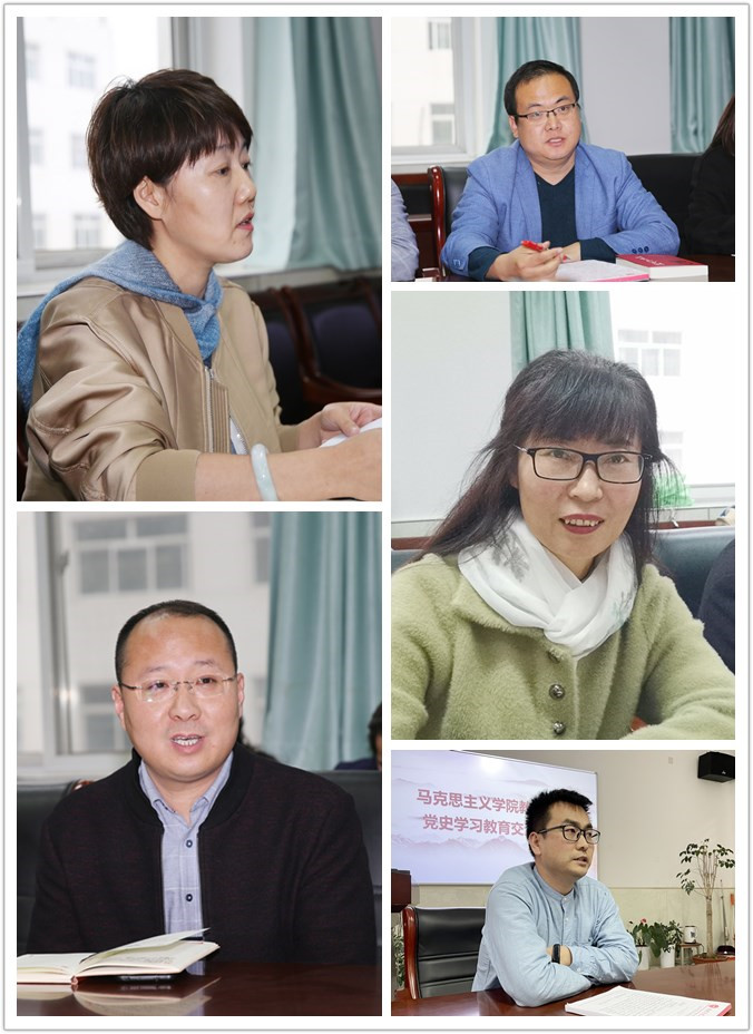 张新柱书记一边听一边记,并和大家热情交流,碰撞思想的火花,共同推进党史学习教育向纵深发展。他说,欲知大道,必先为史。beat365英国官方网站在新的发展阶段,解放思想、明确目标、追赶超越,但在改革创新中必定会遇到发展瓶颈,习近平总书记在讲话中强调学党史、悟思想、办实事、开新局,为开新篇、布新局指明了方向:向历史寻经验,向历史求规律,向历史探未来。习近平总书记在建党100周年的重大时刻,在“两个一百年”奋斗目标历史交汇的关键节点,提出在全党集中开展党史学习教育,正当其时,十分必要。他希望马院教职员工能够充当党史学习教育排头兵,快速在学校掀起党史学习热潮。首先要原原本本学,逐字逐句学。习近平总书记在党史学习教育动员大会上的重要讲话,高屋建瓴,内涵丰富,闪烁了马克思主义智慧光芒党史文献,学党史的根本遵循,马院教师要首当其冲的逐条逐句学、研讨交流学,要内化于心,用于指导学党史、贯穿于思政课。并结合习近平《论中国共产党历史》、《毛泽东、邓小平、江泽民、胡锦涛关于中国共产党历史论述摘编》、《习近平新时代中国特色社会主义思想学习问答》、《中国共产党简史》四本书,学深、悟透、讲好马克思主义为什么“行”、中国共产党为什么“能”、中国特色社会主义为什么“好”。二、马院党史学习教育要走在全校前列。充分发挥马院教师优势资源——有当选陕西省中共党史学会第九届理事会副会长的教师,有博士,有教学名师,有参加省市讲课比赛获奖教师……要先学一步、学深一层,给全校做示范、树标杆。马院领导班子要充分发挥组织力作用,创新形式、突出重点、务求实效、制定方案,精心策划,让马院党史学习教育走心走深走实,为全校做出示范。三、马院每位教师要在全校党史学习教育中发挥应有作用。每一位共产党员在党史学习教育中要依靠自己、相信自己、亮出自己,选好切口讲党史对全校总支全覆盖。以绥师党史研究为主体,精心谋划、灵活选题、打造金课、组建团队,立足学校、面向榆林、走向陕西、冲向全国。努力把beat365英国官方网站党史学习教育落到细处、实处、深处,使党史学习教育成为推动beat365英国官方网站高质量发展的生动实践。