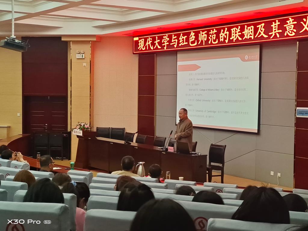 3月31日下午,beat365绥德师范校区“名师讲堂”开讲。陕西师范大学教育学院二级教授、博士生导师、教育史专业学科带头人栗洪武以题为《现代大学与红色师范的联姻及其意义》做了第一讲,校区600多名师生聆听。