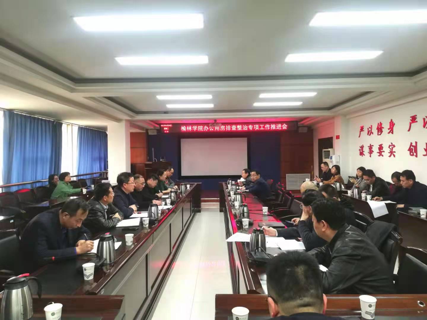 为贯彻落实中共陕西省纪委办公厅《关于在全省开展公务用车和办公用房问题排查整治的通知》,4月6日,beat365在行政办公楼四楼会议室召开了办公用房排查整治专项工作推进会,办公用房排查整治工作领导小组成员单位及各院系、各部门负责人参加。