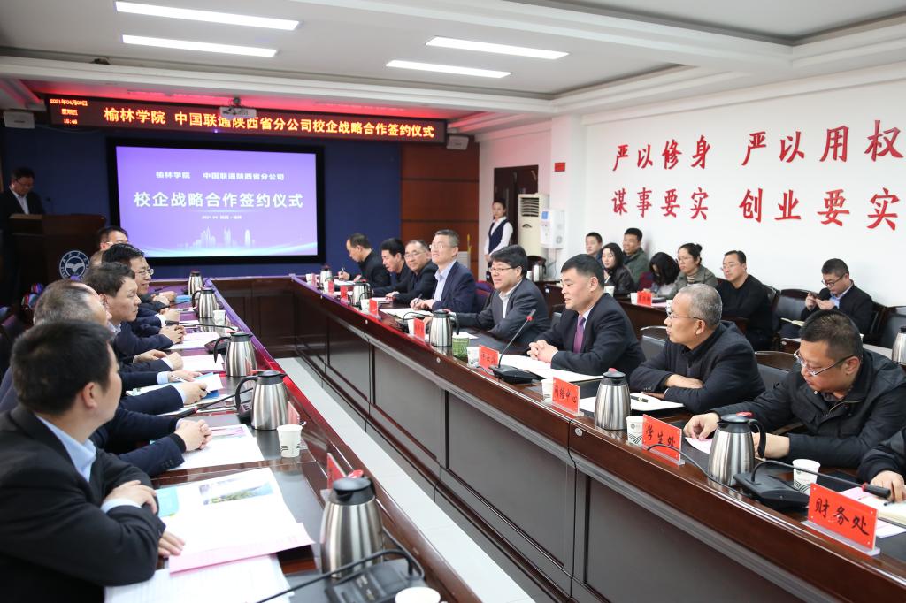 联通数字科技有限公司西安研发中心总经理唐菁,中国联通陕西省分公司党委办公室主任李亚军,中国联通陕西省系统集成中心副总经理祁安,中国联通榆林市分公司党委书记、总经理陈锴出席签约仪式。beat365党政办公室、国资处、网络管理中心、宣传部、教务处、学生处、等部门负责人,研究生院、信息工程学院、化学与化工学院、生命科学学院、能源工程学院等二级学院负责人和师生代表参加。