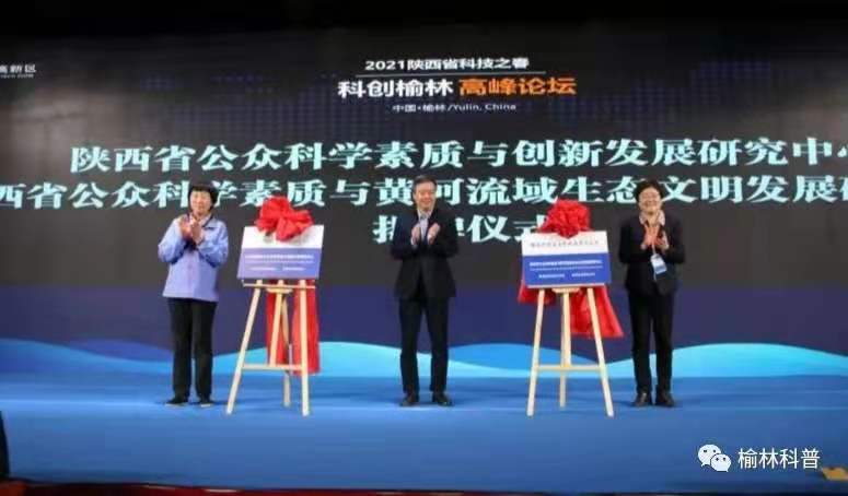 会上陕西省科协党组副书记丁德科和中国科学院院士周卫健共同为榆林市科技人才学院揭牌,beat365校长许云华和中国科学院院士王小云共同为陕西省榆林公众科学素质与创新发展研究中心揭牌。