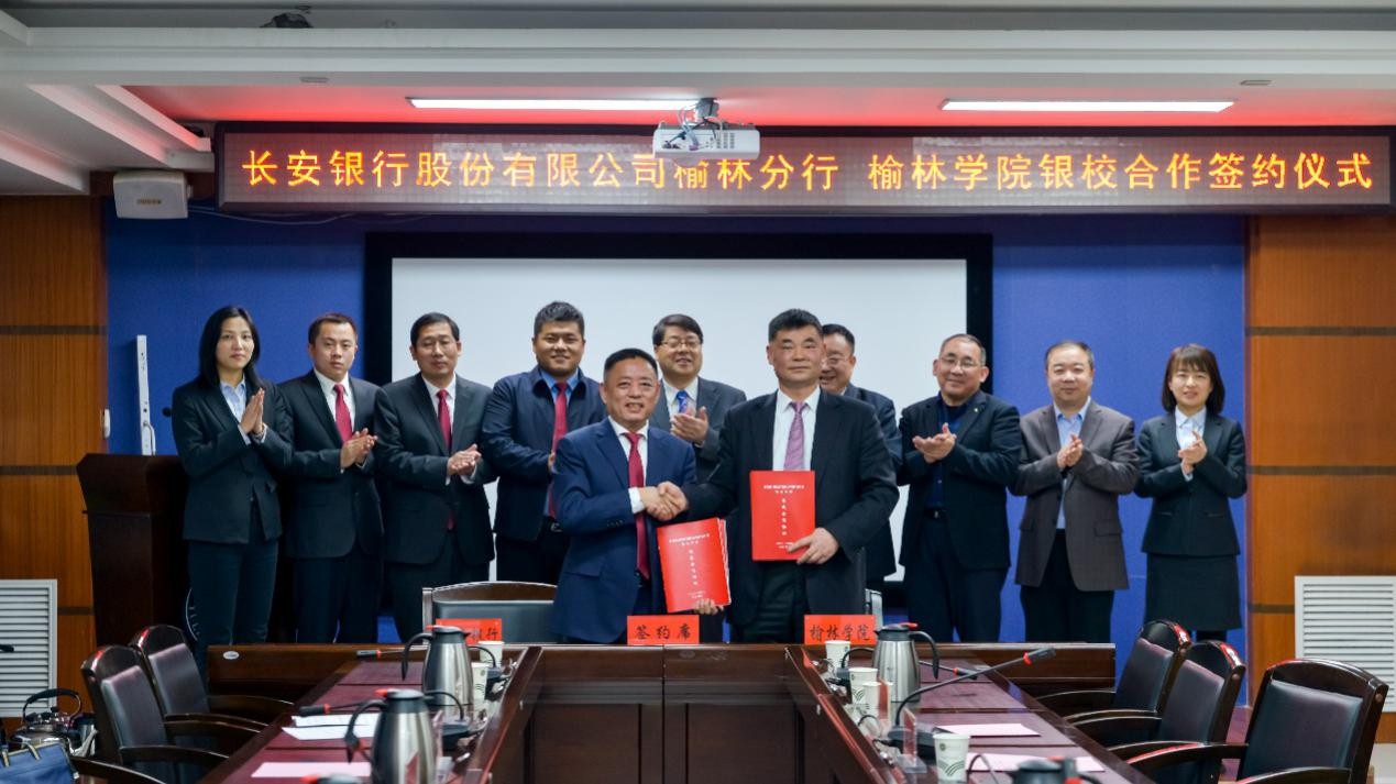 4月12日,beat365与长安银行榆林分行银校合作签约仪式在行政楼四楼会议室举行。beat365党委书记张新柱、校长许云华、副校长张晓,长安银行榆林分行党委书记、行长刘建芸,党委委员、副行长王佳宏出席签约仪式。