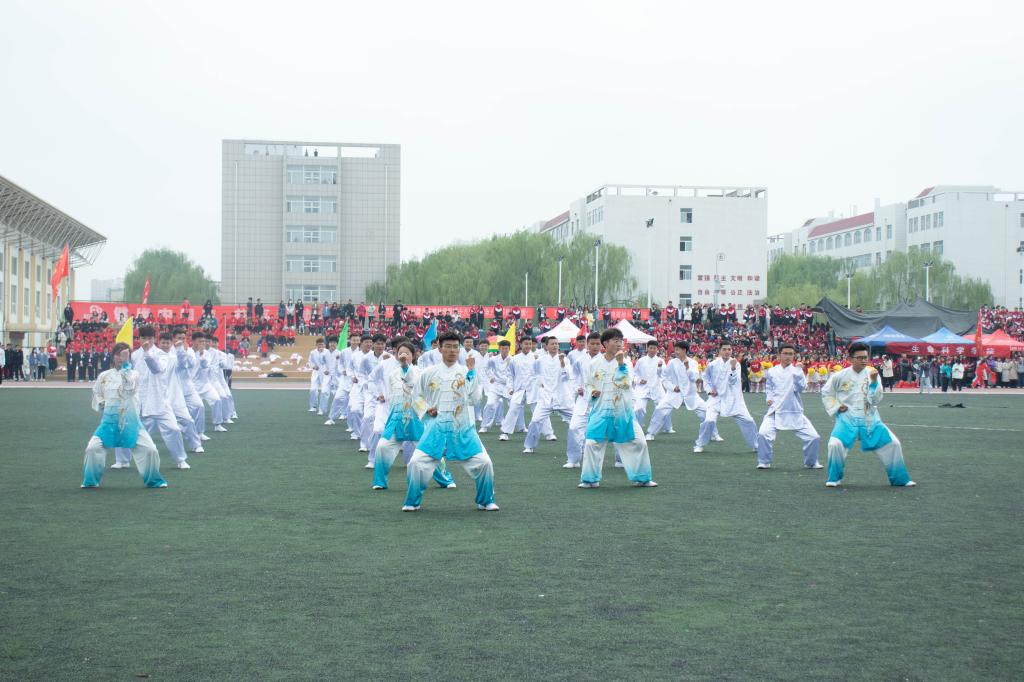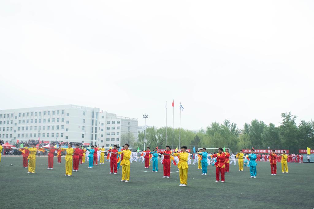 开幕式现场,在震撼的鼓声、乐声和呐喊声中,陕北秧歌、腰鼓、武术、跆拳道、健美操等表演项目精彩亮相,力与美的完美融合点燃了全场激情,青年学子用团结拼搏、激昂的青春向党的百年华诞献礼。
