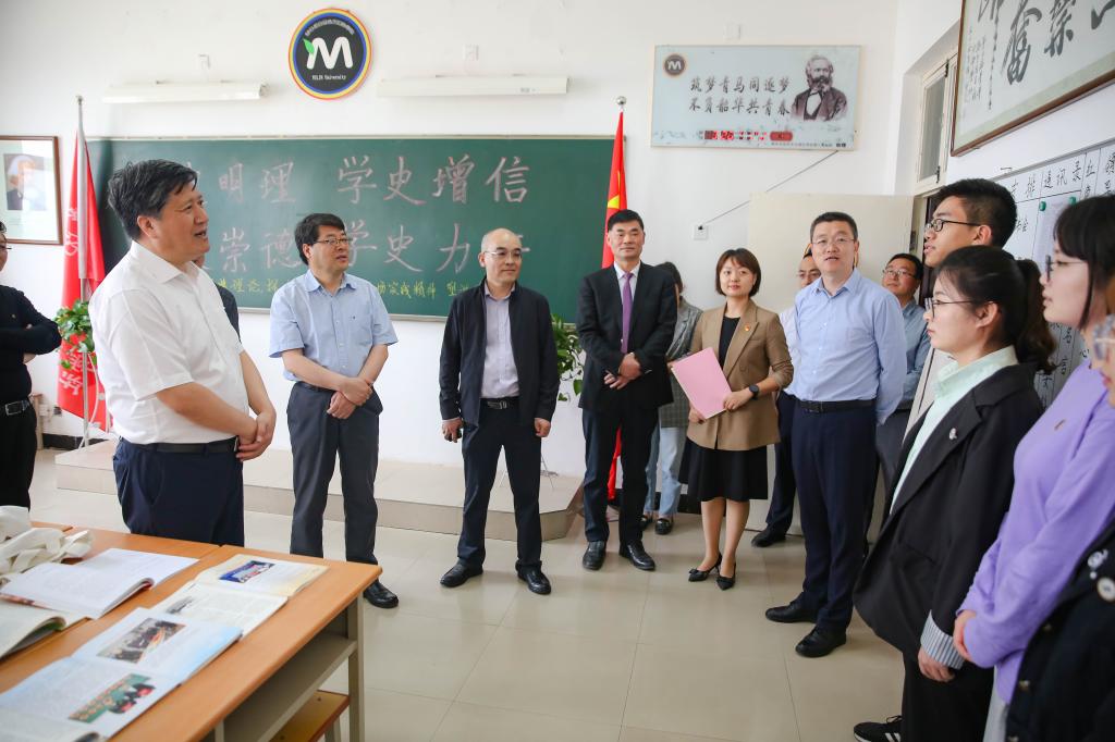 5月14日上午,省委教育工委书记王建利和省政府教育督导委员会办公室主任刘白燕,省委教育工委、省教育厅办公室副主任巩建朝 一行3人来beat365调研指导党史学习教育和改革发展工作。榆林市副市长杨东明、教育局局长沈效功,beat365党委书记张新柱,校长许云华陪同。