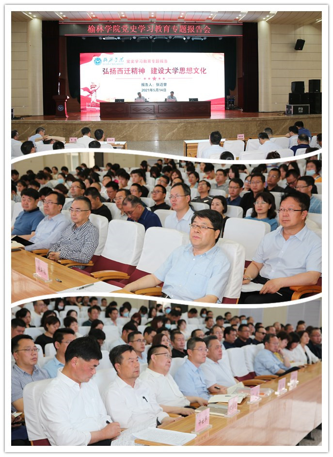 张新柱对张迈曾书记的生动精彩报告表示感谢。他说,张书记的讲座以《弘扬西迁精神 建设大学思想文化》为主题,以西迁精神为主旋律,结合自己在西安交大一流大学和创新港的的建设中给我们从班子建设、创新港建设、思想文化建设三个方面进行了讲授,站位高远高大上、生动具体接地气,对我们深刻理解西迁精神,进一步践行和弘扬西迁精神具有针对性的指导意义,也为我们建设高水平应用型大学提供启示和借鉴。要把党史学习教育和学习弘扬践行西迁精神有机结合,把学习成效转换为追赶超越的强大动力、工作方案和生动实践。一、学习弘扬西迁精神,切实把领导班子建设好。“21个越是”向领导班子提出了高要求,学校党政一把手要团结务实带动班子形成强大合力,学习西安交大领导班子《约法十则》,我们学校出台了《约法十章》,领导班子落实“十个带头”。二、学习弘扬西迁精神,全力把科创新城校区建设好。成立专班,抢抓机遇,攻坚克难,7月1日之前确保开工,为建党100周年献礼。三、学习弘扬西迁精神,用力把学校思想文化建设好。培植学校文化软实力,使硬件建设和软件建设方面都能够有新的提高,促进高质量、动车式、跨越式发展,建设人民满意的大学、榆林市委市政府满意的大学、全校师生满意的大学而努力奋斗!