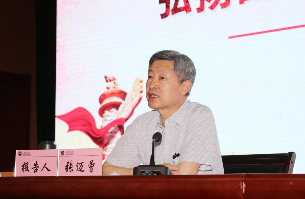 张迈曾从传承西迁精神,建设创新港;班子建设的重要性;必须坚持思想文化建设三个方面与在场师生分享了他在西安交通大学工作期间的所思、所感、所悟、所做。他说,一个大学的精神,一要溯其历史,观其由来演进;二要看其教育理想的建立和实施。在西安交通大学的教育理想中,从历史到今天,爱国奋斗毫无疑义地处于核心地位,是大学精神和大学文化的凝练表达,激励着一代又一代学子砥砺前行。