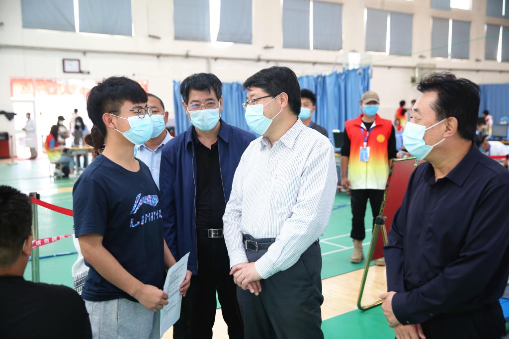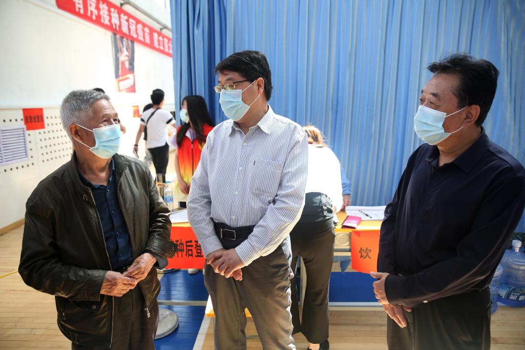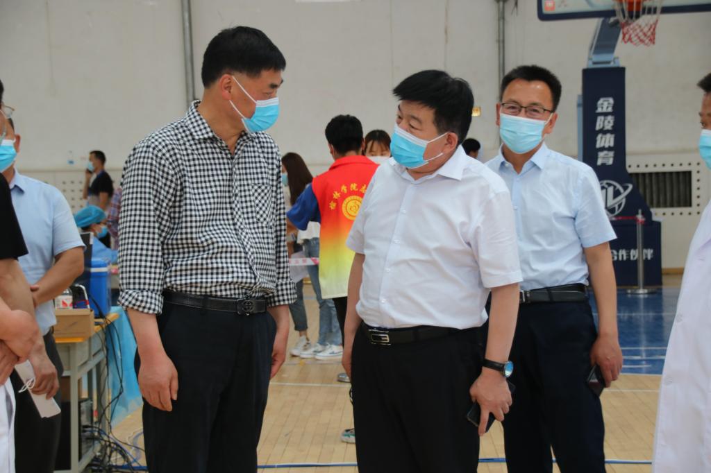 5月21日上午,校党委书记张新柱亲临接种现场,详细询问学生疫苗接种、生活和学习情况,勉励大家要爱党、爱国、爱校,与现场完成疫苗接种离退老同志亲切交谈,询问接种疫苗后有无不适反应,叮嘱他们一定要保重身体,积极为学校建言献策,为学校改革发展发挥余热。张新柱充分肯定疫苗接种组织工作,认为组织有力、保障到位、秩序井然,并要求一定要做好接种后的半小时留观工作,确保师生安全。5月21日下午,校党委副书记、校长许云华,榆林市卫生健康委员会党组书记、主任高怀和现场指导疫苗接种工作,详细了解接种情况,看望慰问医护人员,肯定beat365疫苗接种工作准备充分,安排周到,要求严格执行安全规范开展接种。副校长张富林、张晓,党委副书记尚爱军也到体育馆检查指导疫苗接种工作。