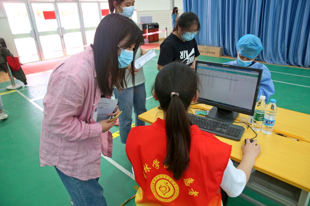 师生在志愿者的引导下有序排队,经过健康码查验、体温测量后依次进入候种区。接种现场,人员信息核实、健康咨询、知情同意书填写、身份证信息录入、疫苗接种、现场留观各环节环环相扣,井然有序,接种高效快捷。