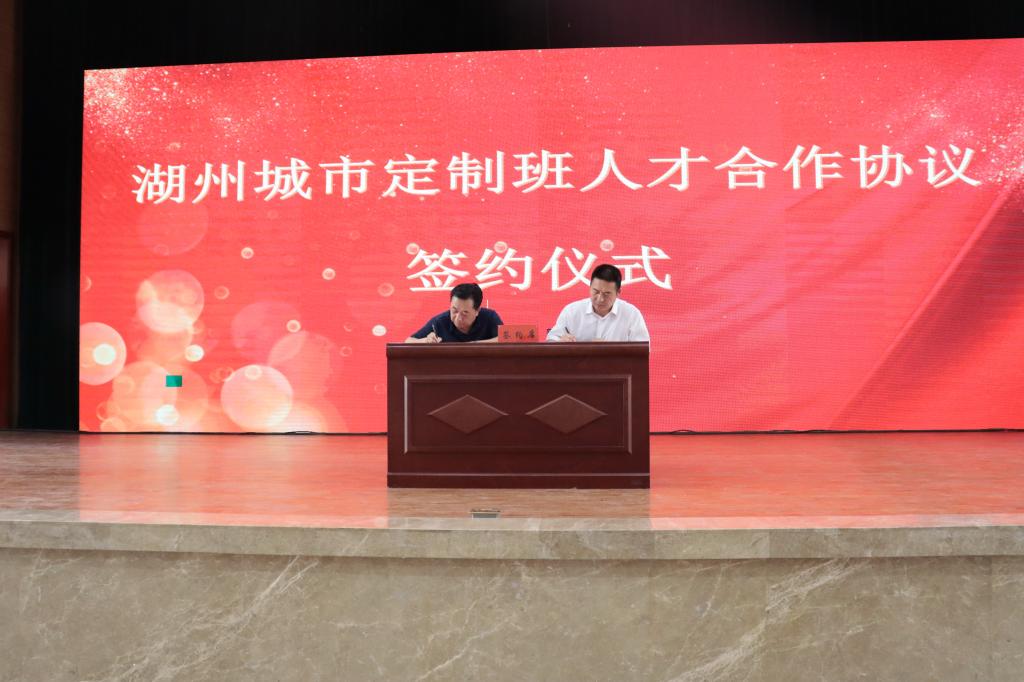 尚爱军与梁公一签订了湖州“城市定制班”人才合作协议。根据合作协议,双方将在人才合作共建、人才交流业务等方面加强合作,通过定期开展引才活动、建立实习(实训)基地、建立交流协作等方面充分利用地方资源优势与高校人才优势实现双方人才交流合作,实现校地人才工作资源的优势互补,为beat365毕业生提供更广阔的锻炼成长平台,通过精准实习促进精准就业。