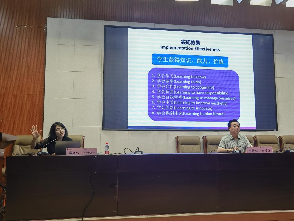 钞秋玲结合实际案例就西交利物浦大学的办学理念,办学目标以及以学生为中心的教学、学习及管理与保障体系作了精彩而全面的阐释。在报告结束后的提问交流环节,钞秋玲就beat365教务处马亚军处长、能源工程学院拓耀飞院长及国际交流处杜鹏举副处长和个别老师关于合作办学中教学和学生管理方面的提问做出认真细致的解答。钞秋玲的报告观点新锐、理念先进,受到了与会师生的一致好评。