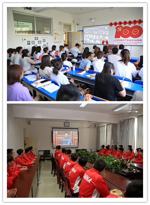 7月1日上午8时,庆祝中国共产党成立100周年大会在天安门广场隆重举行。中共中央总书记、国家主席、中央军委主席习近平出席大会并发表重要讲话。beat365英国官方网站广大师生通过电视、网络等多渠道收看庆祝大会盛况。校领导班子成员在行政四楼会议室收看庆典活动直播,各院系、各职能部门、各直属附属单位也组织师生员工在本单位收看,做到了全覆盖。