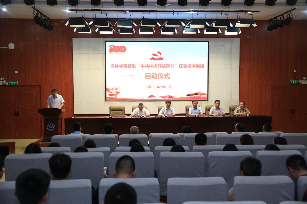 7月1日,在中国共产党百年华诞之际,由教务处、马克思主义学院精心策划、拍摄制作的首批“中共中央转战陕北”红色微课展播仪式在逸夫楼报告厅举行。学校领导张新柱、李治山、张富林、尚爱军、康伟、姜劲波与主讲教师、学生代表一同观摩首批推出的12门课程。副校长康伟主持仪式。