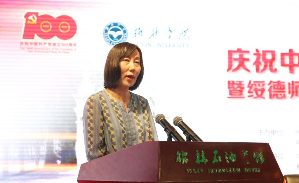 高红霞说,今天大家共聚榆林,共同庆祝中国共产党成立100周年,同时深切怀念为陕北党组织创建做出巨大贡献的李子洲、王懋廷等同志,就是为了弘扬光荣传统、赓续红色血脉,把伟大建党精神继承下去、发扬光大。她表示陕西省社科联会积极对标实际工作需要,组织全省广大社科工作者,发挥好哲学社会科学“认识世界、传承文明、创新理论、资政育人、服务社会”的作用,在奋力谱写陕西新时代追赶超越新篇章中贡献社科智慧与力量。