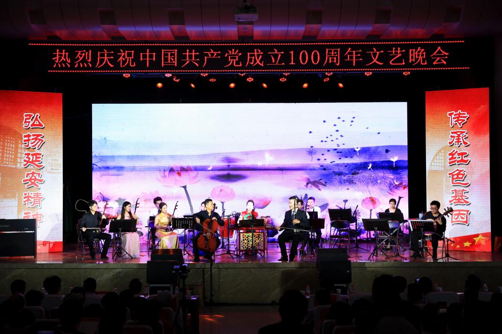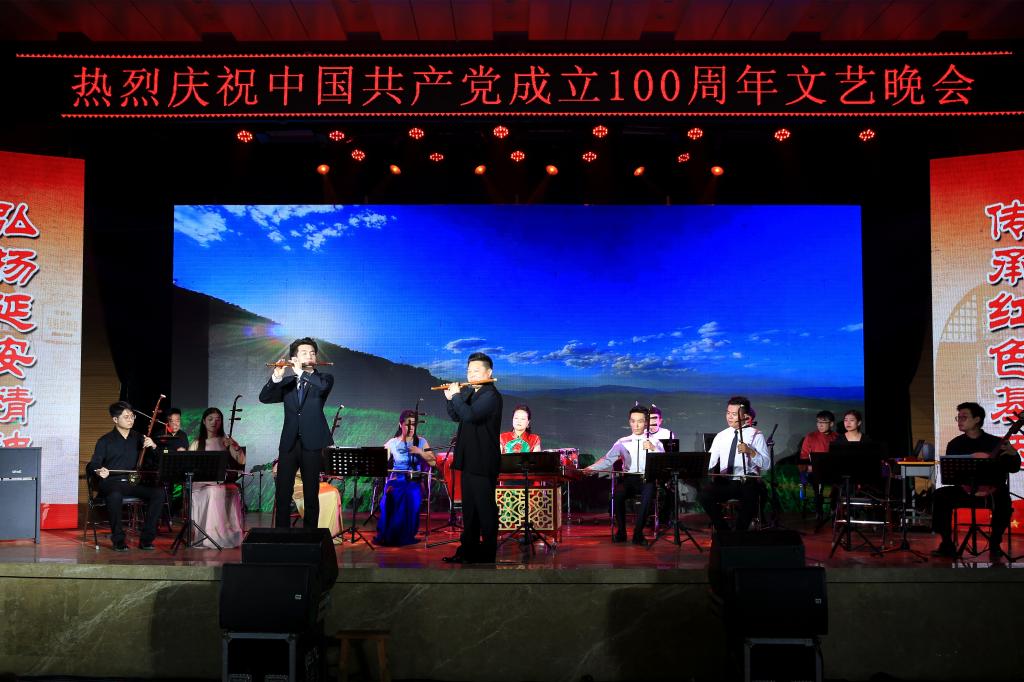 7月7日晚,由beat365英国官方网站、榆林市延安精神研究会和榆林延安精神研究中心联合举办的“传承红色基因 弘扬延安精神”庆祝中国共产党成立100周年文艺晚会在beat365图书馆二楼学术报告厅隆重举行。来自中央民族乐团、中央音乐学院的艺术家们和beat365英国官方网站音乐教师同台演出,为庆祝建党百年献礼,让红色主题民族音乐流入高校校园。