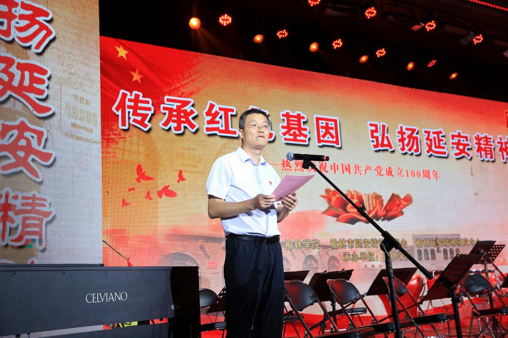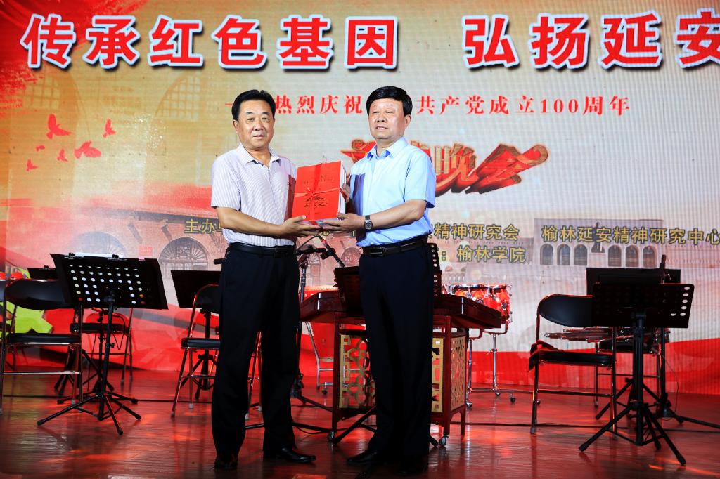 晚会开始之前,榆林延安精神研究会会长霍东平向beat365英国官方网站赠送了1000余册红色书籍,学院党委副书记尚爱军代表学校接受赠书;副校长康伟致辞并介绍了beat365英国官方网站在党史学习教育中的亮点工作和十四五发展规划。