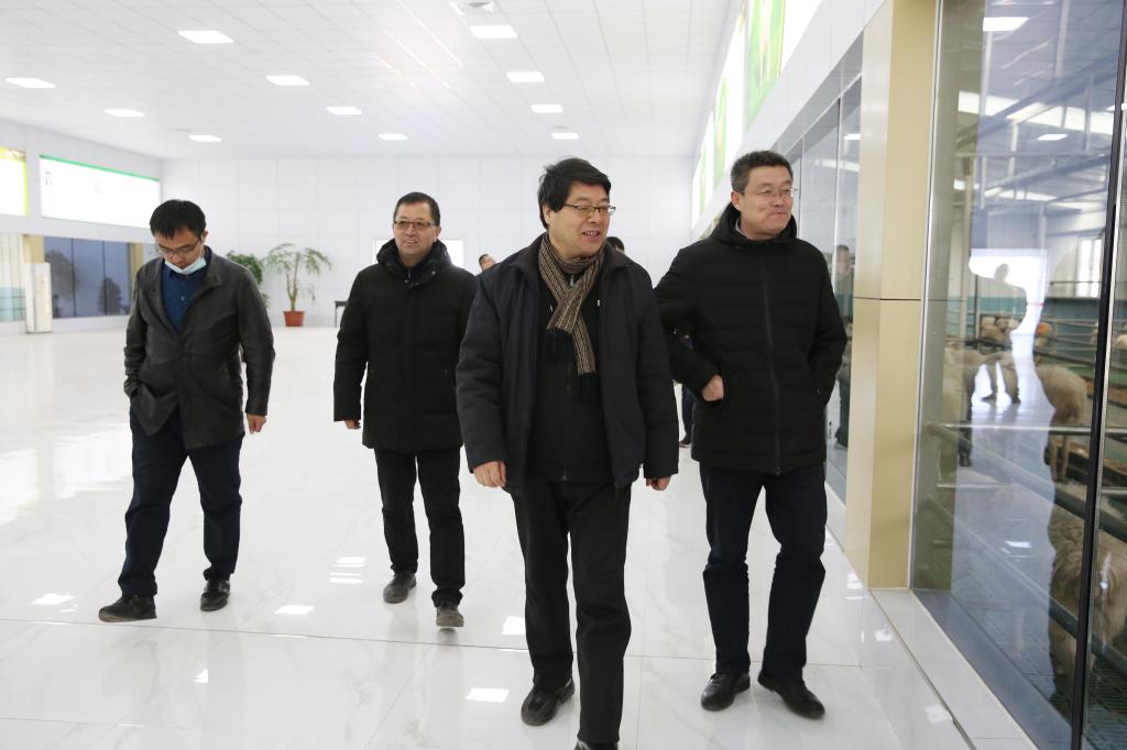 党委书记张新柱、副校长康伟在屈雷教授陪同下调研榆林上河集团现代化羊场