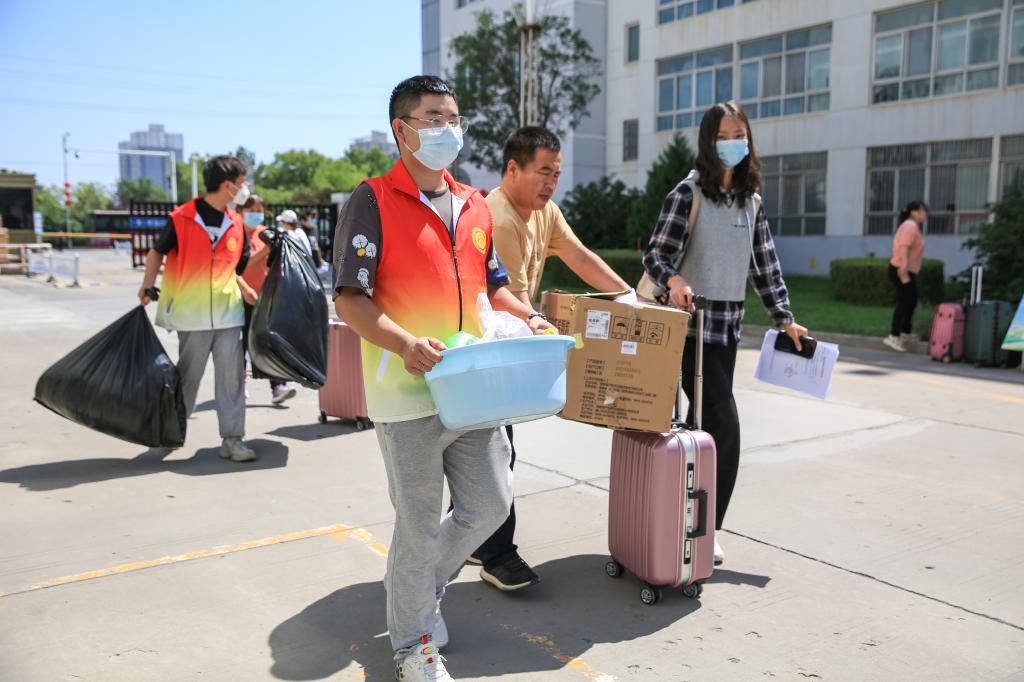 报名现场井然有序:校领导及学校科级以上干部两小时轮岗,无缝对接、严防死守;各单位负责人走进学生宿舍、教室进行慰问,坚守一线及时处理各种情况;安保人员在烈日下仔细为师生行李消毒,测量体温;核酸检测点医务人员认真防控、严谨认真;辅导员详细摸排,做到班级学生到校时间一一对应;学生志愿者“蓝色手推车”以青春的速度奔跑于校园,帮同学们运送行李;还有部分老师用私家车摆渡行李,防止学生报到高峰聚集……疫情无情、人有情,在疫情防控严峻形势下,beat365英国官方网站人以详细的规划部署,高度的责任心,温情的实际行动主动打赢疫情阻隔教育攻坚战,确保秋季开学顺利进行。