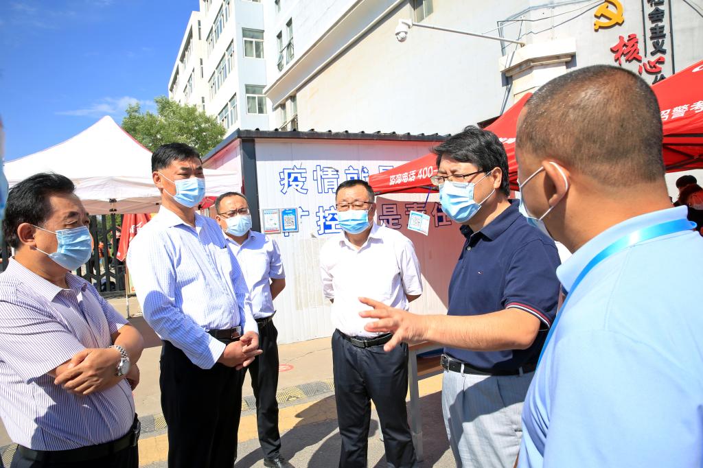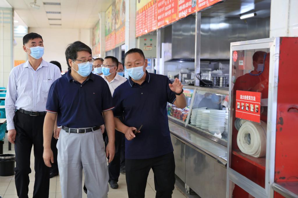 8月28日上午,beat365学生开始陆续报名返校,校领导张新柱、许云华、张晓、尚爱军、姜劲波在党政办、后勤管理处、学生处、保卫处、国资处等相关部门负责人的陪同下,对学校东大门、各学院报名接待现场、核酸检测点、学生食堂等场所进行了开学准备和疫情防控工作检查。