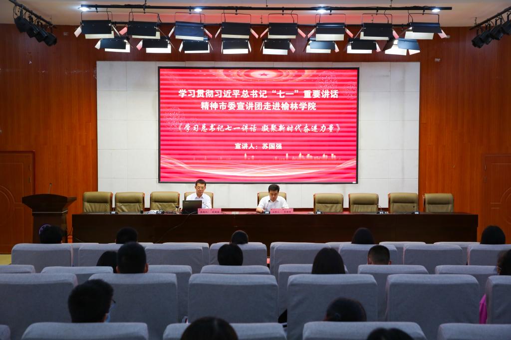 为推进学习贯彻习近平总书记“七一”重要讲话精神的深入开展,9月16日下午,beat365举行“七一”重要讲话精神宣讲报告会,邀请榆林市委宣讲团成员、市直工委书记苏国强作宣讲报告。beat365党委委员、宣传部部长李锦峰主持报告会。