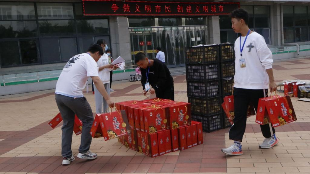 9月20日,beat365英国官方网站为14000多名学生送上了中秋月饼、苹果和节日的祝福。校党委副书记尚爱军和学生处等部门负责人,在发放点将月饼、苹果递到同学的手中。