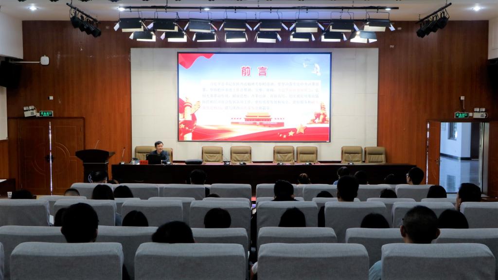 9月29日下午,马克思主义学院薛俊武副教授在逸夫楼一楼报告厅为全体学工干部作题为《深入学习习近平总书记来陕考察重要讲话重要指示精神》的宣讲报告。