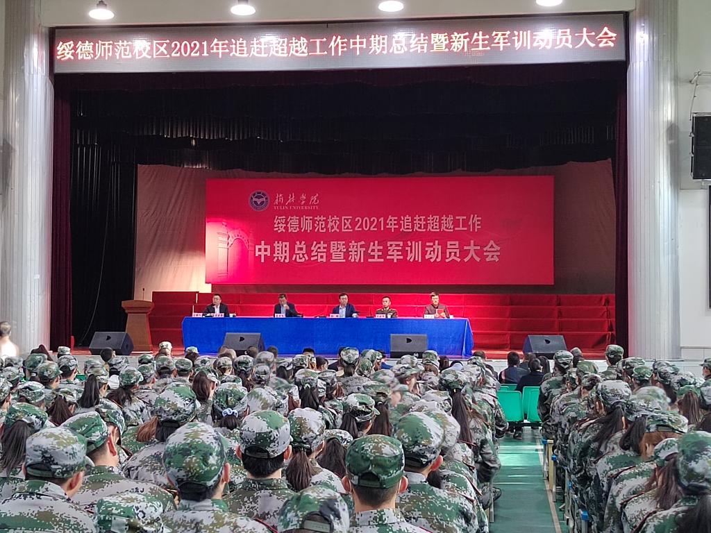 10月9日下午,绥德师范校区在礼堂召开2021年追赶超越工作中期总结暨新生军训动员大会,绥德县武装部副部长卫晓峰、校区所有领导、全体教职工及2021级全体新生参加。大会由校区管委会副主任延晓强主持。
