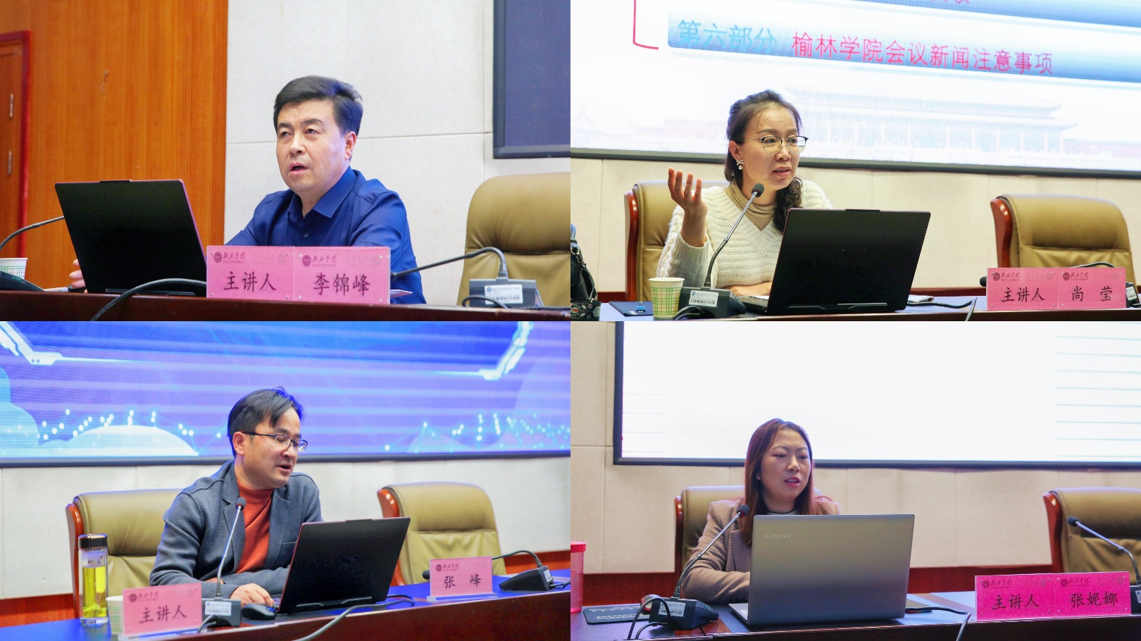 随后进行的专题培训,党委委员、宣传部部长李锦峰教授,信息工程学院张峰教授,文学院张妮娜副教授,宣传部副部长尚莹主任编辑围绕做好高校意识形态工作、网络安全、新媒体摄影技巧、讲好新闻故事等方面进行了讲解。